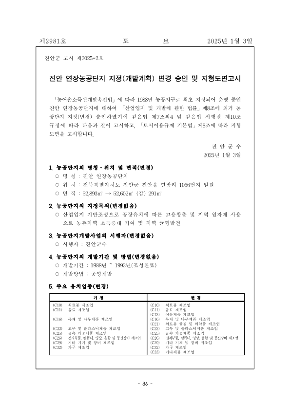 20250103 Áø¾È±º °í½Ã Á¦2025-2È£ Áø¾È ¿¬Àå³ó°ø´ÜÁö ÁöÁ¤(°³¹ß°èȹ) º¯°æ ½ÂÀÎ ¹× ÁöÇüµµ¸é °í½Ã.pdf