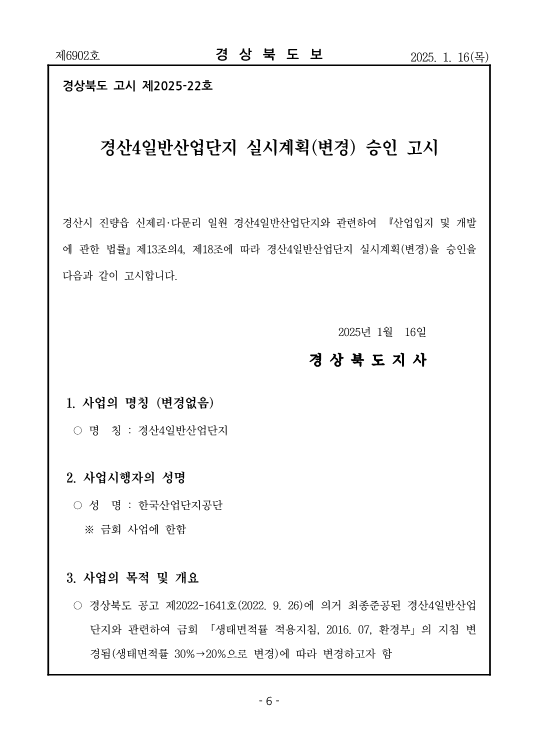 20250116 °æ»óºÏµµ °í½Ã Á¦2025-22È£ °æ»ê4ÀϹݻê¾÷´ÜÁö ½Ç½Ã°èȹ(º¯°æ) ½ÂÀÎ °í½Ã.pdf