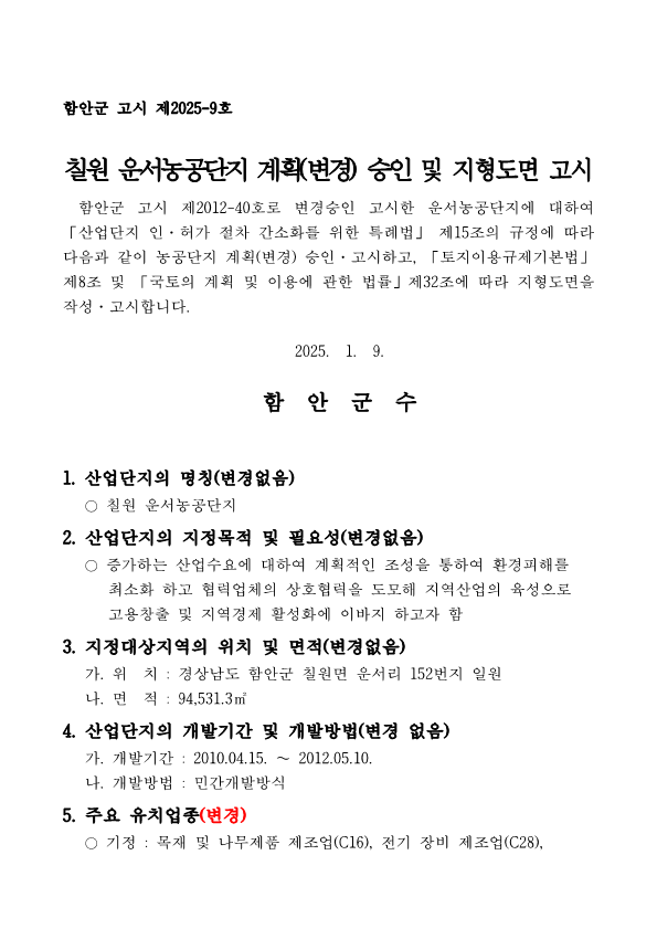 20250109 ÇԾȱº °í½Ã Á¦2025-9È£ Ä¥¿ø ¿î¼³ó°ø´ÜÁö °èȹ(º¯°æ) ½ÂÀÎ ¹× ÁöÇüµµ¸é °í½Ã.pdf