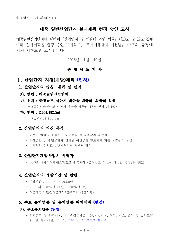 20250110 ÃæÃ»³²µµ °í½Ã Á¦2025-4È£ ´ëÁ×ÀϹݻê¾÷´ÜÁö ½Ç½Ã°èȹ º¯°æ ½ÂÀÎ °í½Ã.pdf